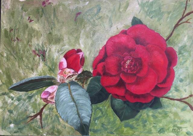 Camelia, acryl op doek, ingelijst, 50 x 70