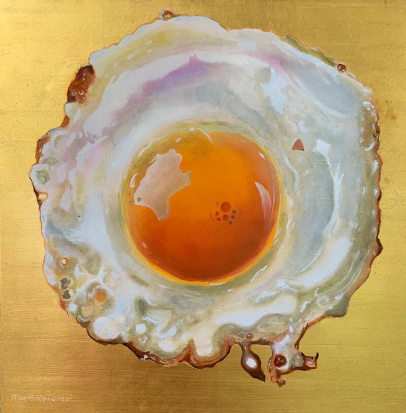 Gebakken ei naar Tjalf Sparnaay, 30 x 30 op paneel met ondergrond goud